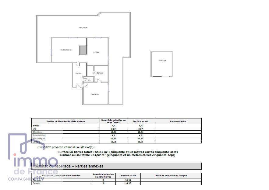Surface carrez : 51.57 m²
